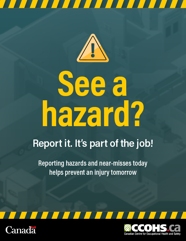 Affichez ce panneau dans l’ensemble de votre lieu de travail pour rappeler aux travailleurs que le fait de signaler un danger ou un quasi-accident aujourd’hui aide à prévenir une blessure demain.